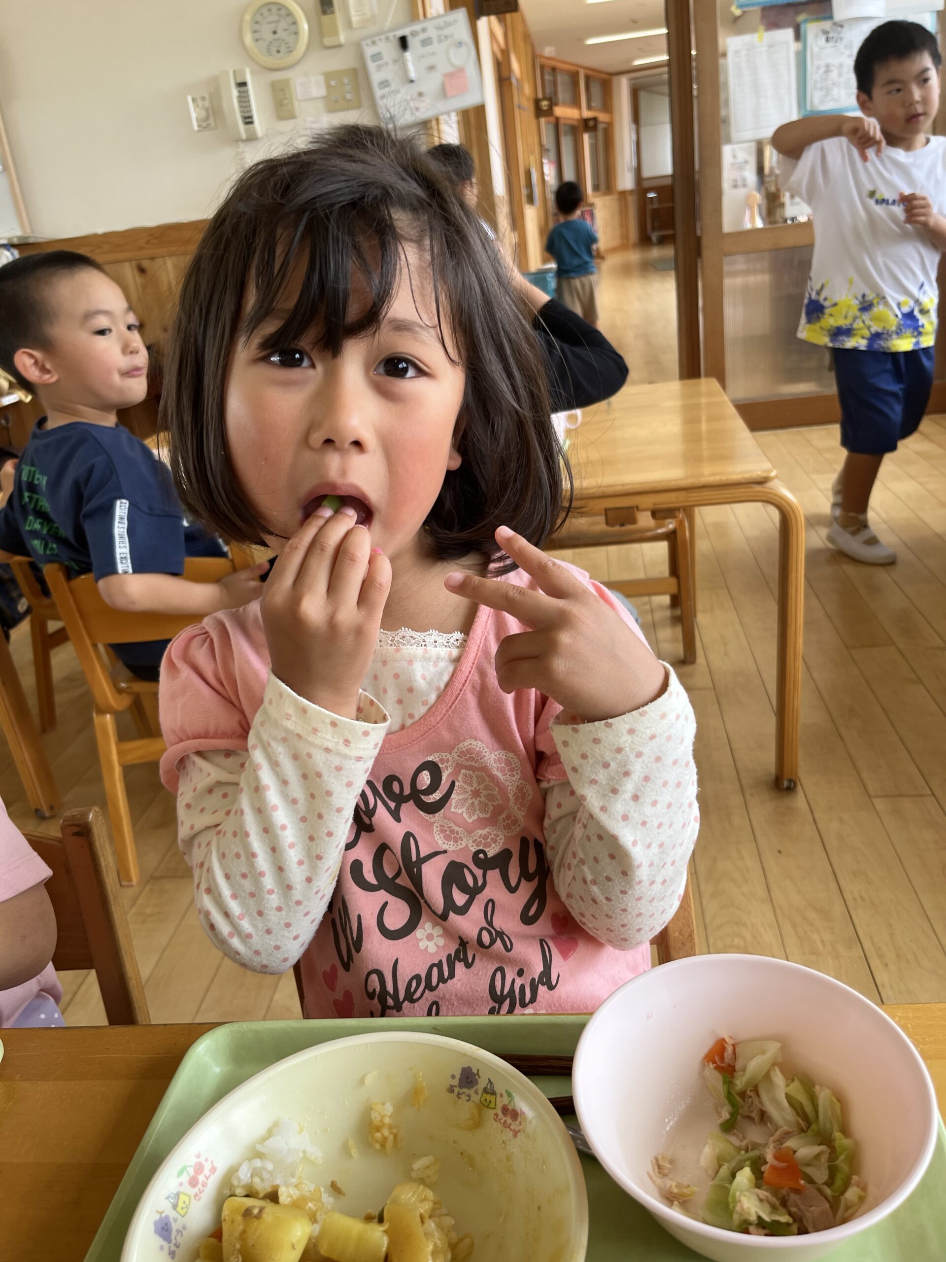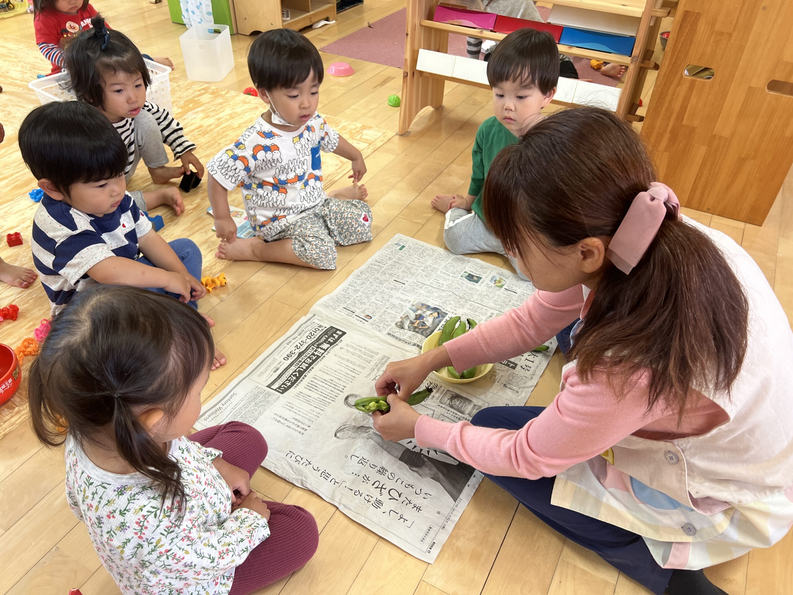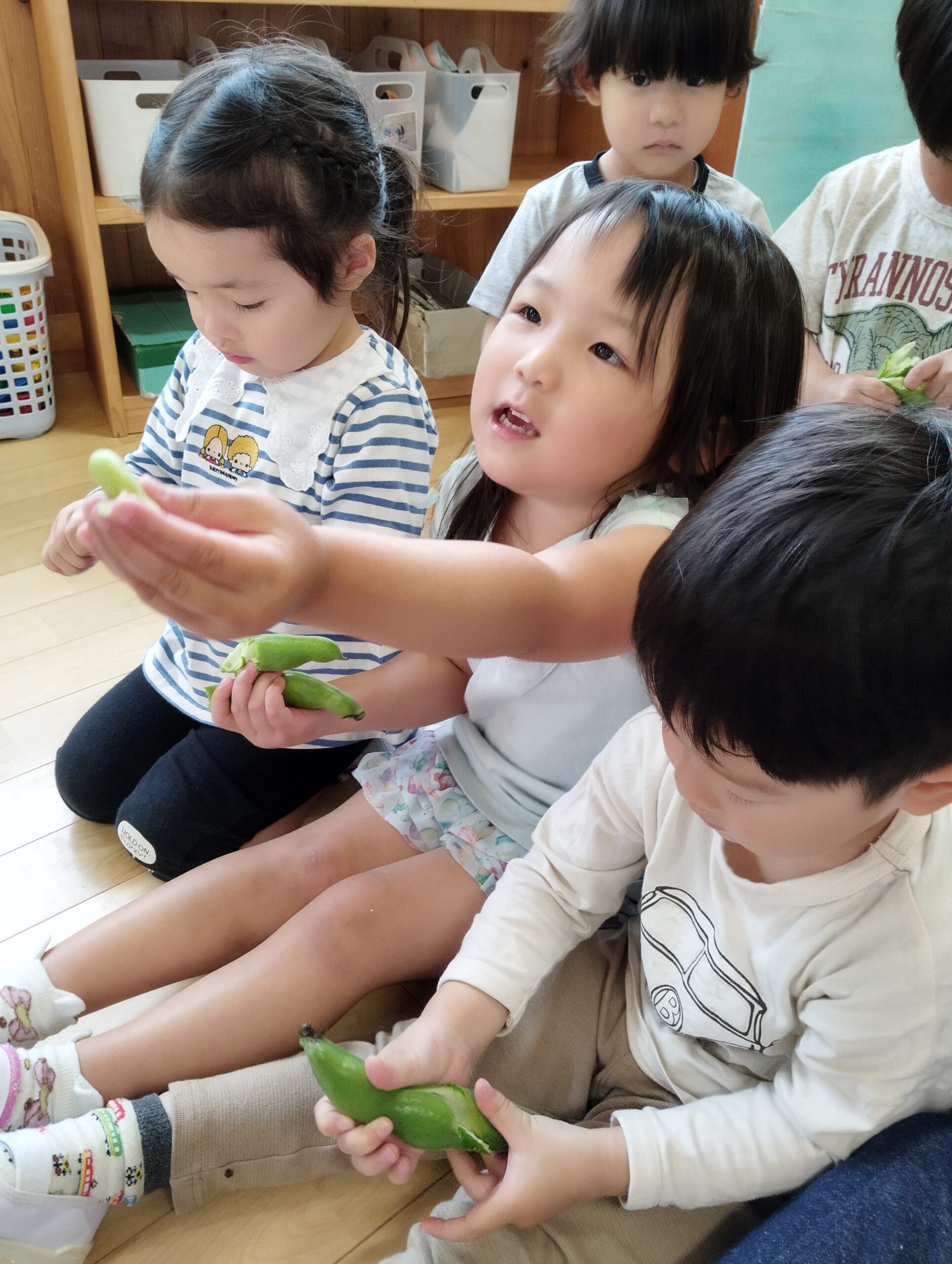 そらまめを食べてる子においしい?と聞くと「うん!」と元気よく返事をしてくれました!