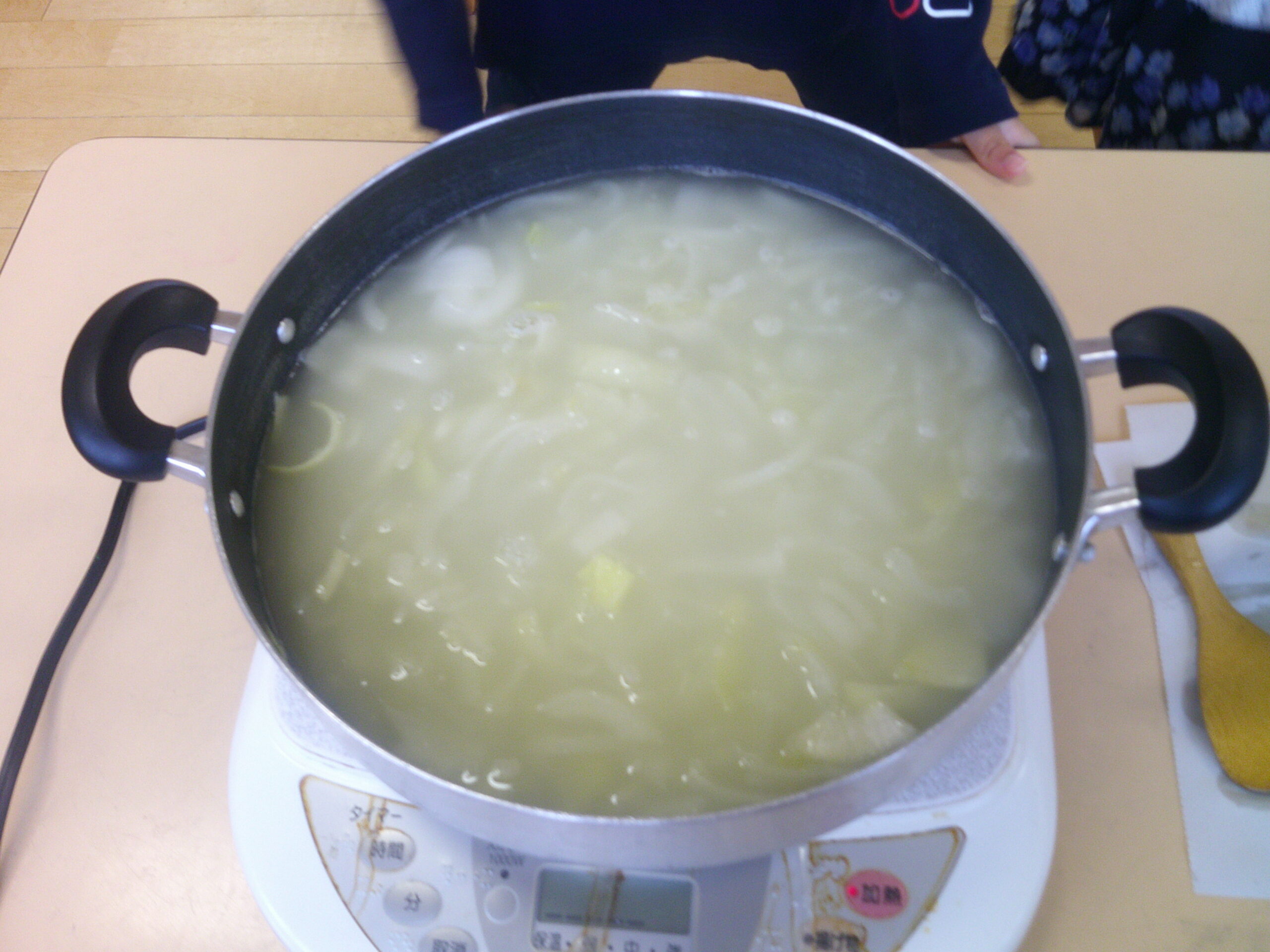 収穫した玉ねぎをコンソメスープにして、みんなで食べました😋