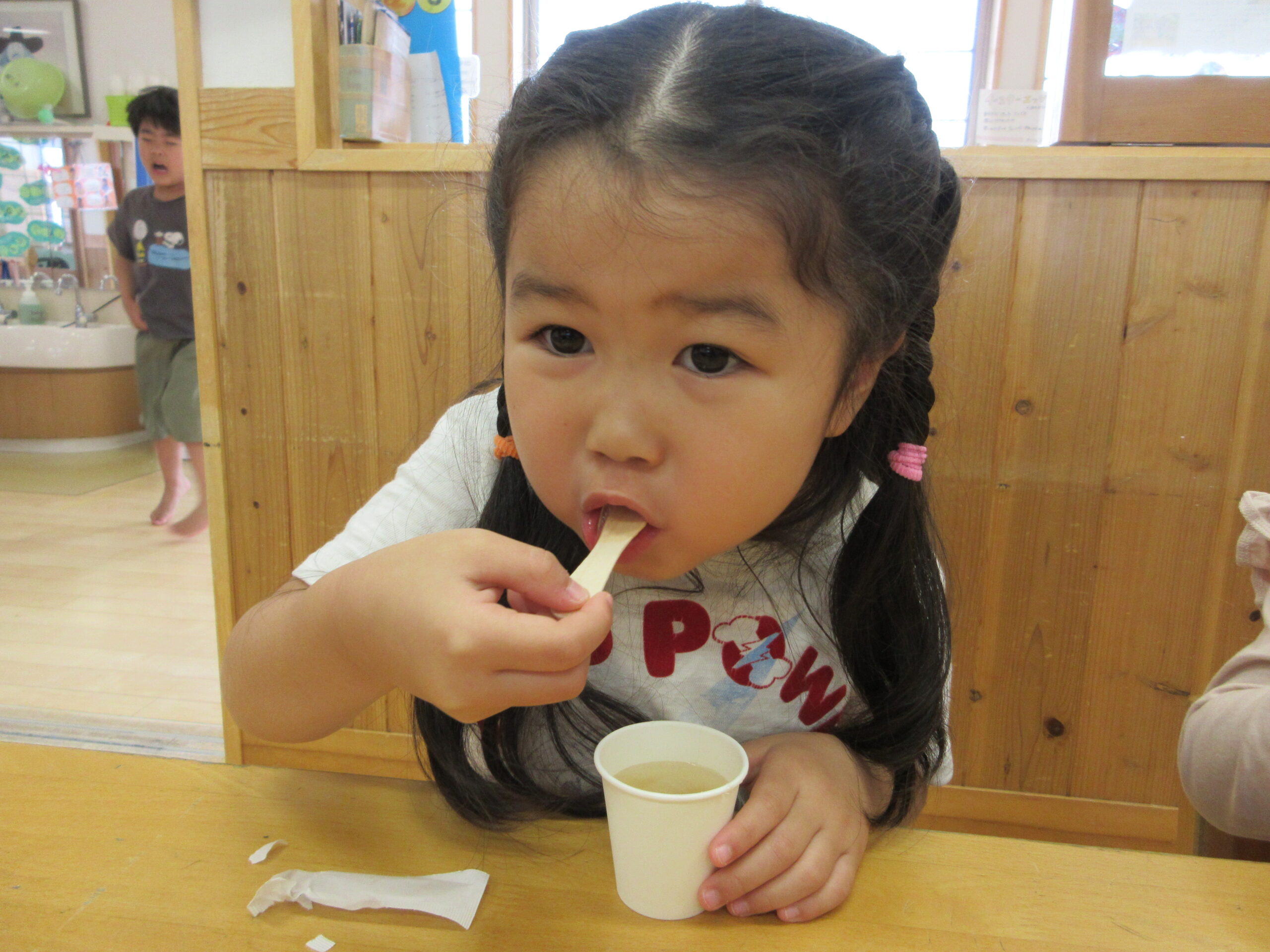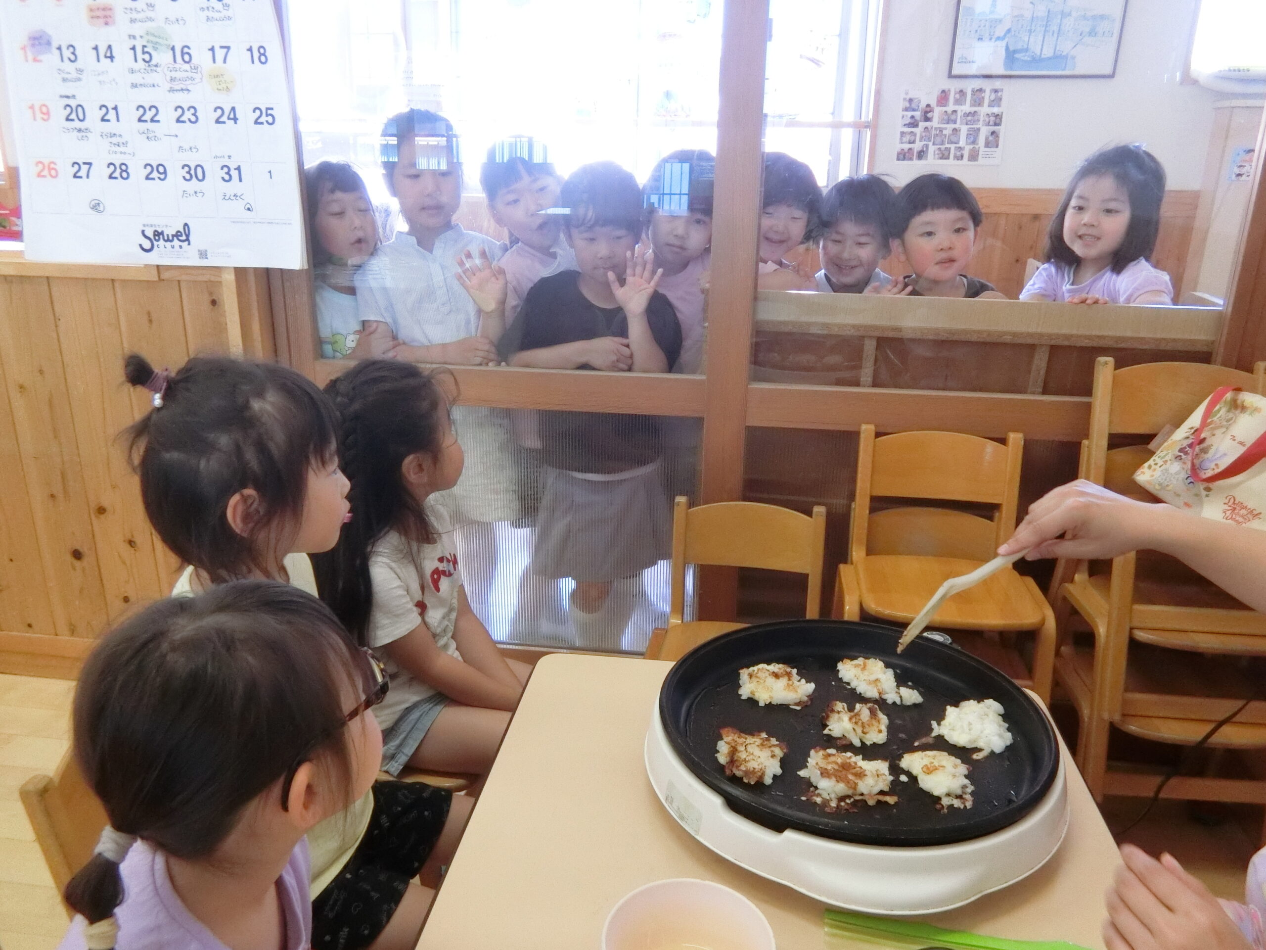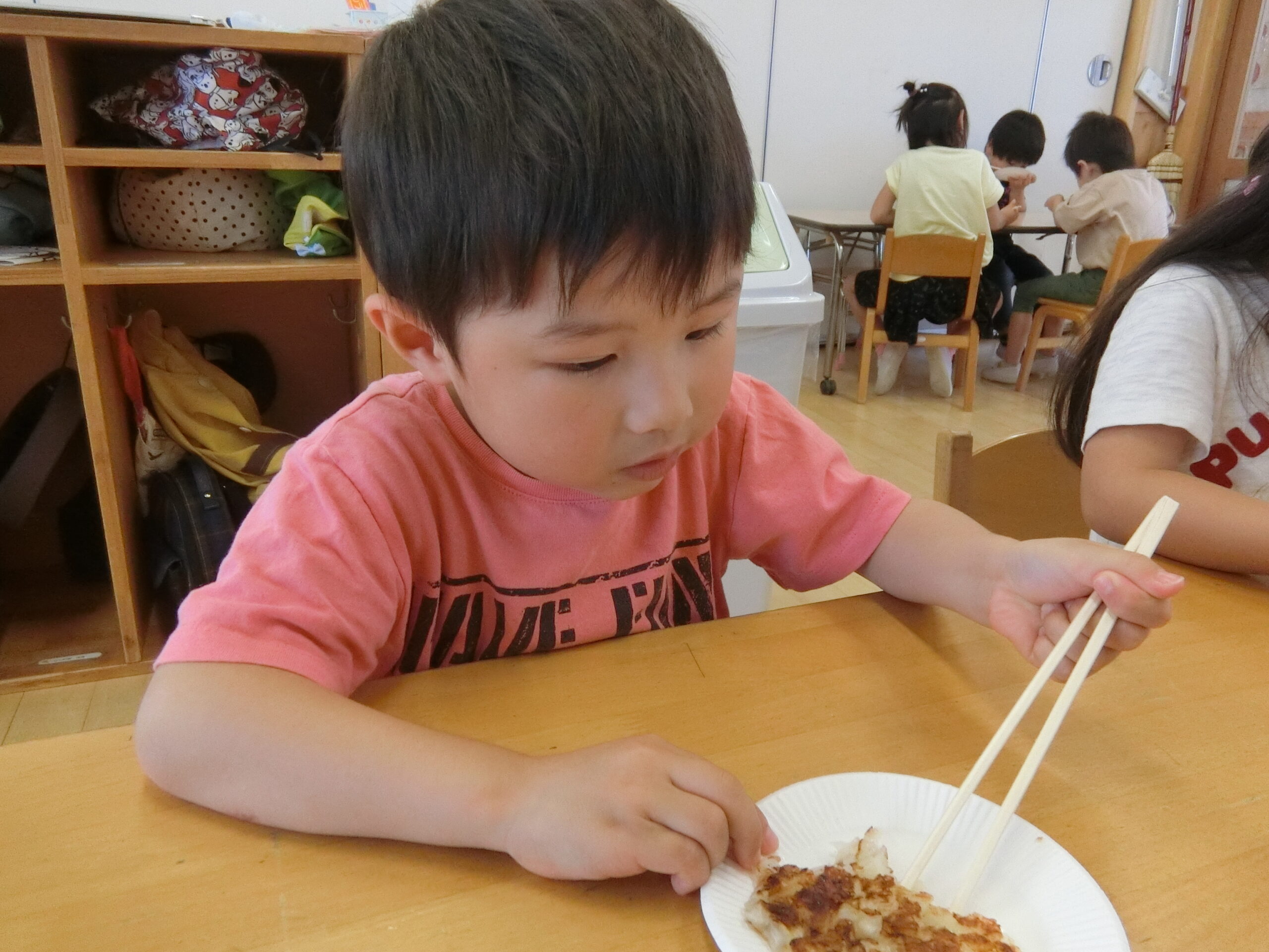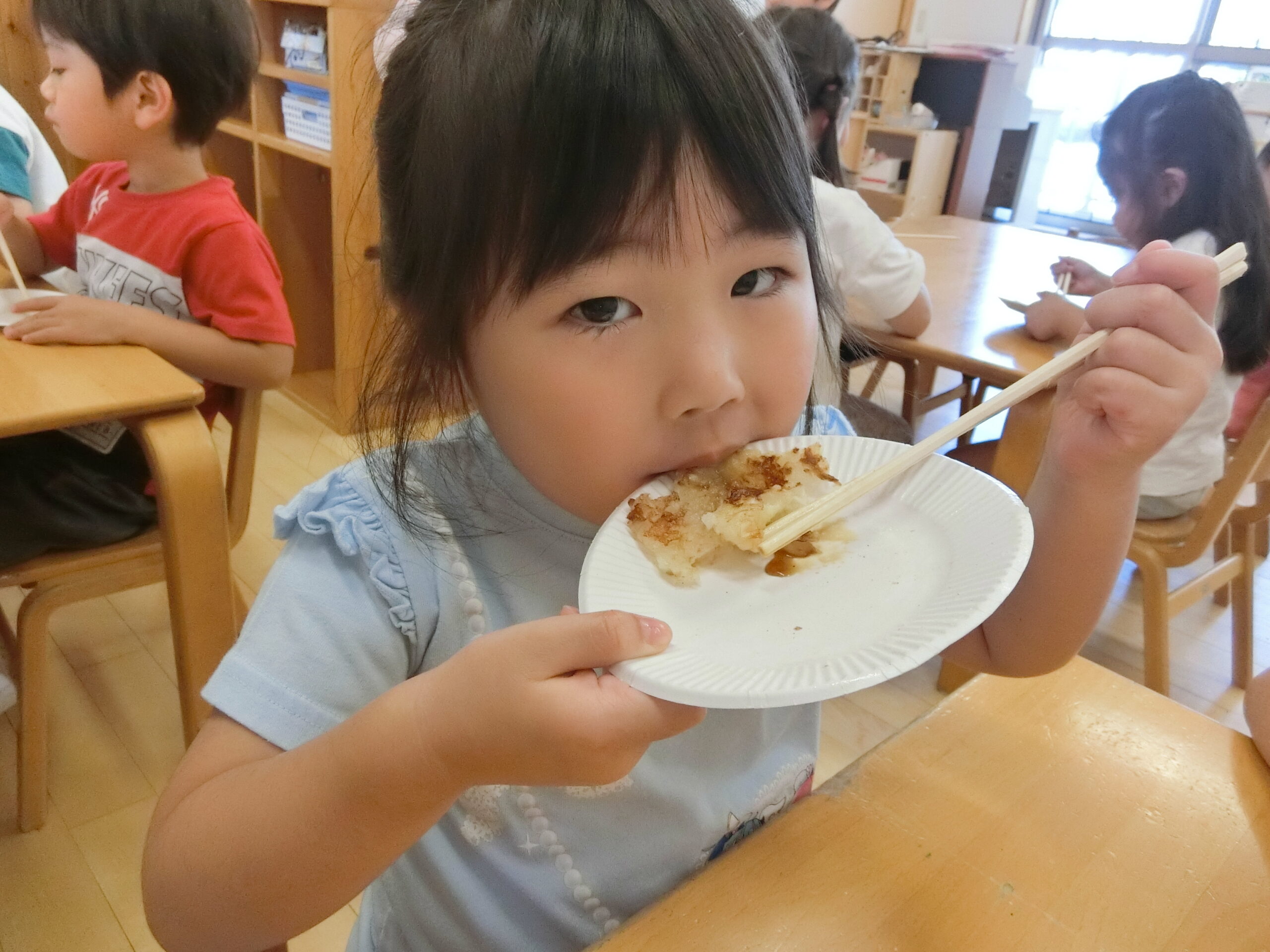 チヂミをもらう時に「おおきいのがいい!」「ちいさくしてー」と自分の食べられそうな方を多くの子がちゃんと