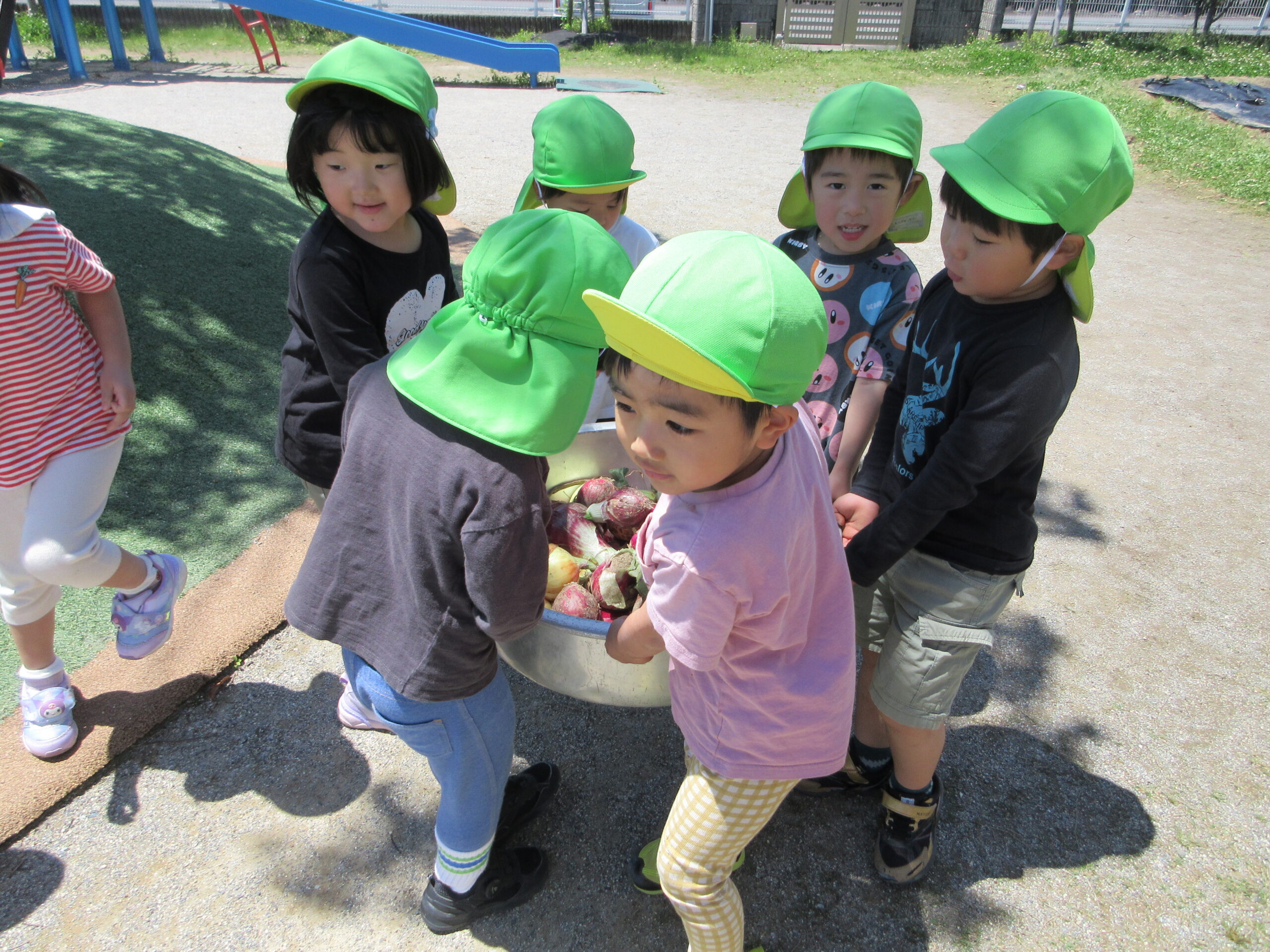 「うんとこしょ、どっこいしょ」とかけ声をしながら頑張って収穫をしてくれました