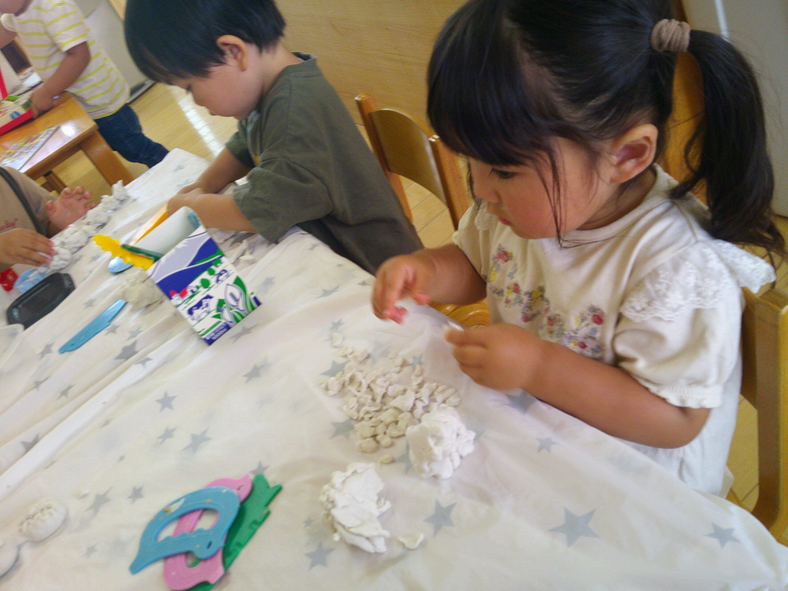 粘土の感触を楽しみながら、手先を使い、形を自由に作る楽しさを感じた子どもたちでした😊