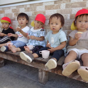 室内で食べるおやつも美味しいけど、戸外で食べるのはまた別のようで、
