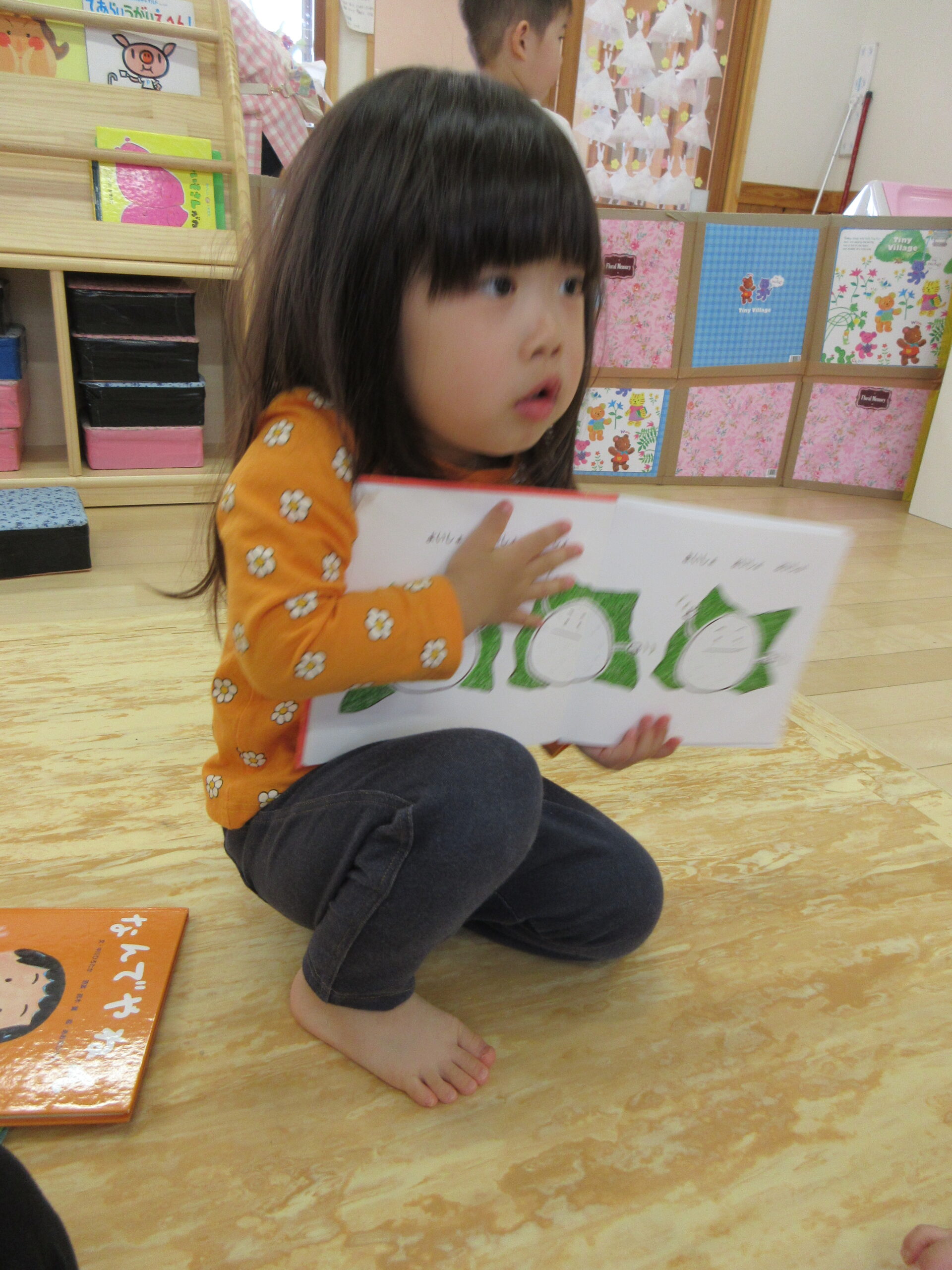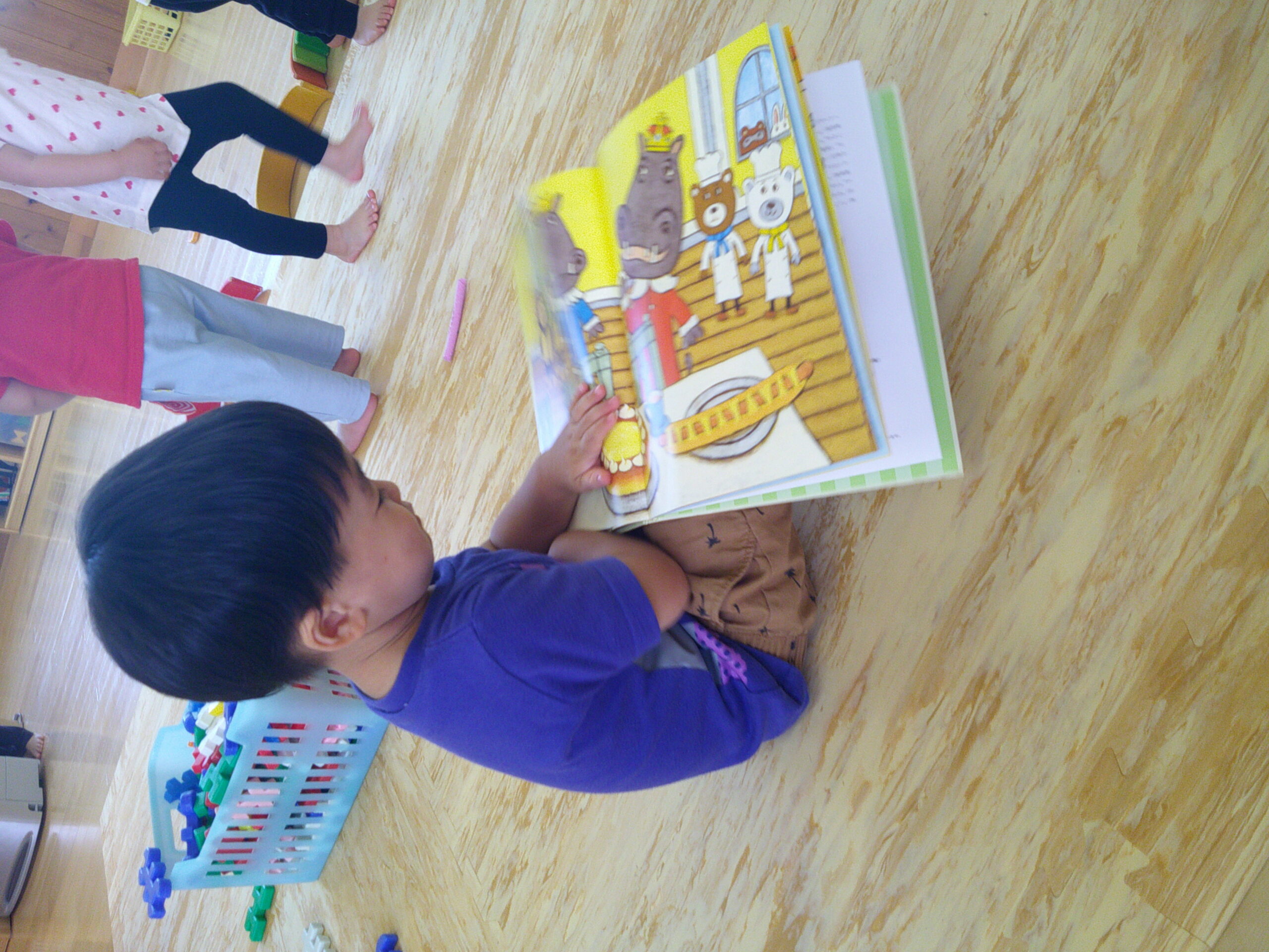 保育室を覗いてみると。。体操教室の合間にも絵本を楽しむぱんだ組さんの姿を発見!