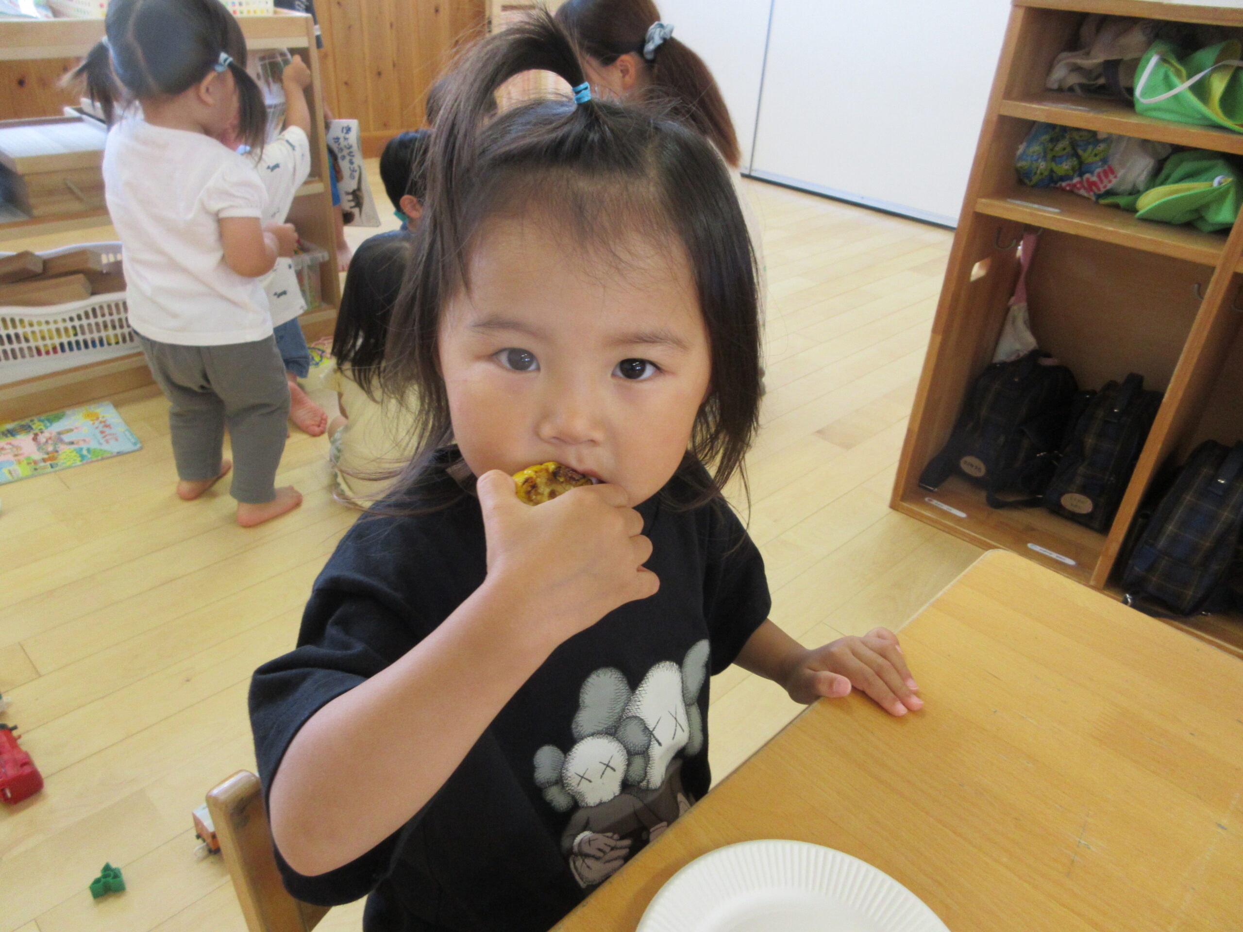まるごとかぶりつく子と1粒ずつ食べる子とがあり、食べ方1つでも子どもたちの個性が出るなぁと美味しそうな笑顔を微笑ましく見ていた担任です✨