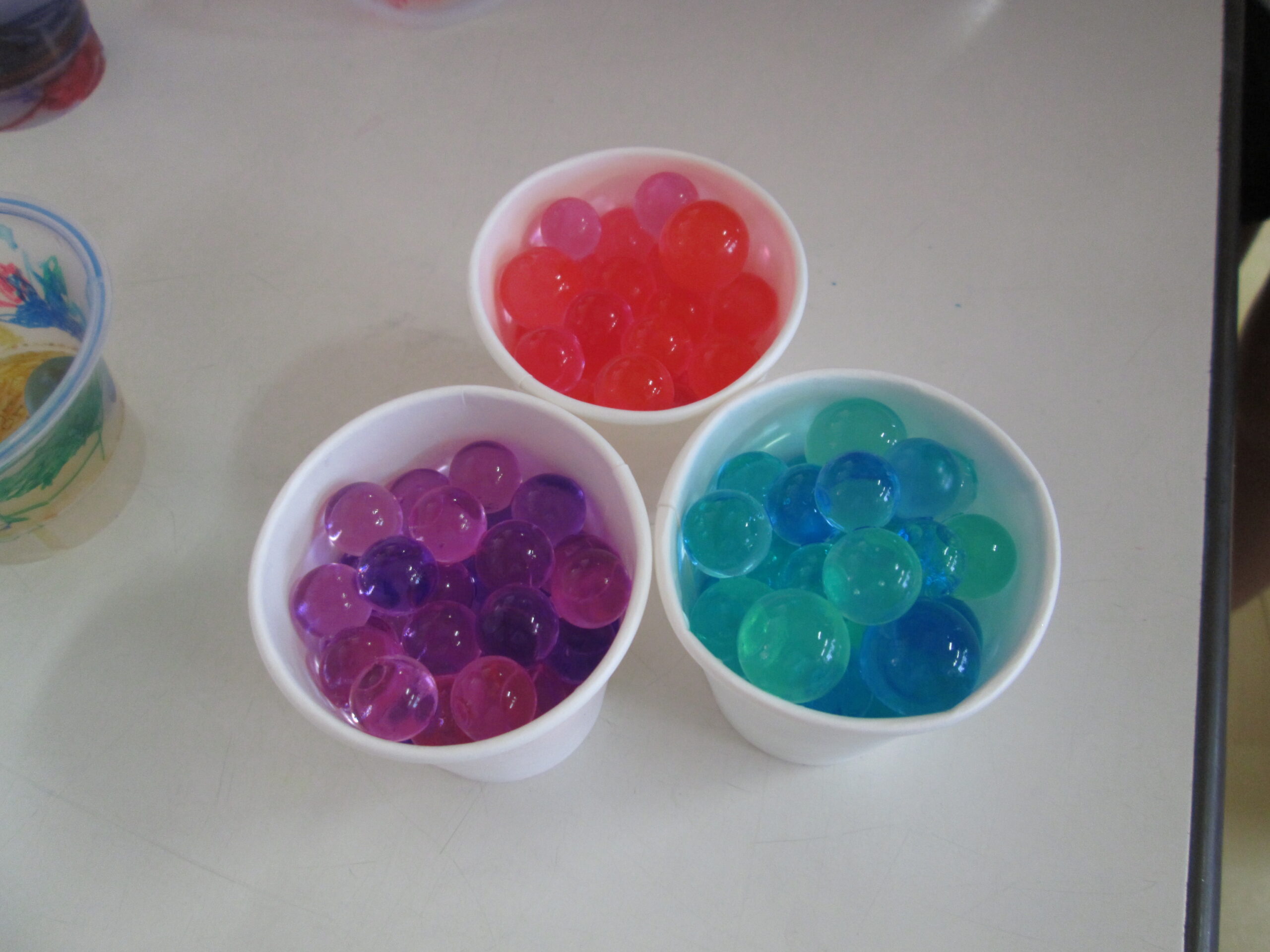 そこで!お部屋でも遊びを楽しむことが出来るように、寒天と水で膨らむビーズを使って遊びました🎵